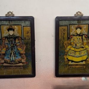 Pair of Chinese Emperor Ancestor Portrait Framed Reverse Glass Painting