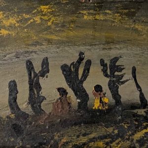 HAROLD HERBERT ELLIOTT “Procession” Oil Painting B.C. Artist 6″ x 10″ 1950’s