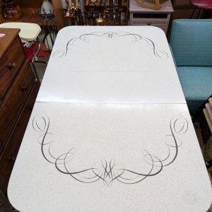 Mid-Century Modern Retro White Gold Fleck Arborite Kitchen Table with Leaf
