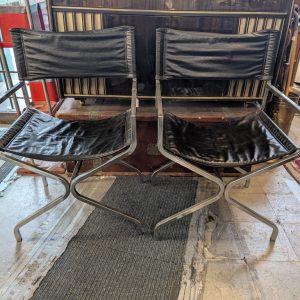 Retro Mid-century Modern Pair Black and Chrome Director Sling Chairs
