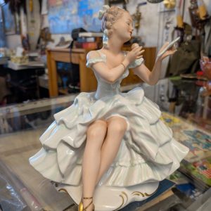 Wallendorf Porcelain Ballerina Seated Dancer with Mirror Gold Accents