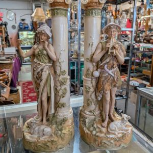 Antique Royal Dux Bohemia Porcelain Figurines Shepherds Pair