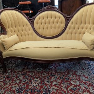 Carved Wood Medallion Sofa – Antique Gold Velvet