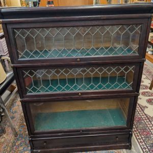 Antique 3-Tier Barrister Bookcase Leaded Glass Stacking Library Cabinet