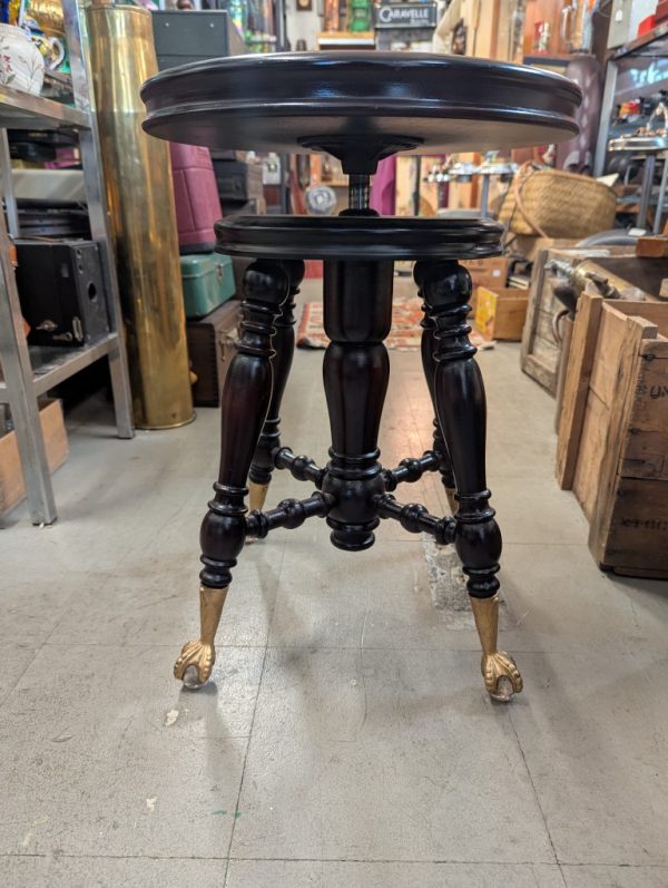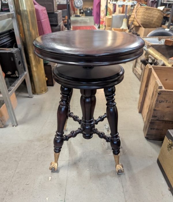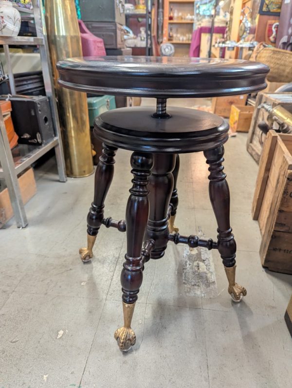 Antique Wood Swivel Piano Stool Telescopic Seat Claw Feet Canadian
