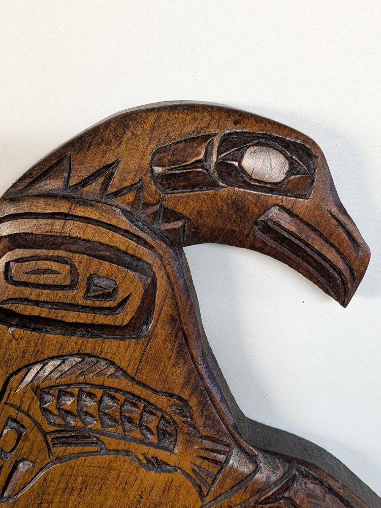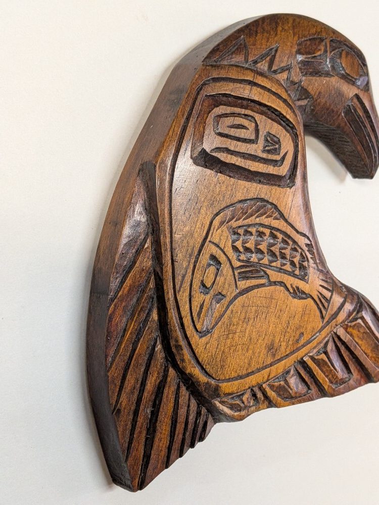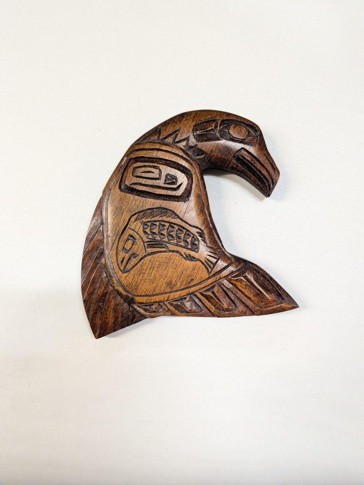 Indigenous hand carved traditional Pacific Northwest Coast design of an eagle and salmon FTF.