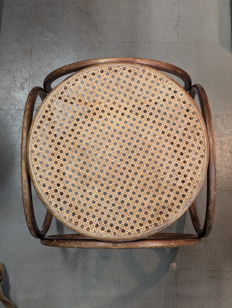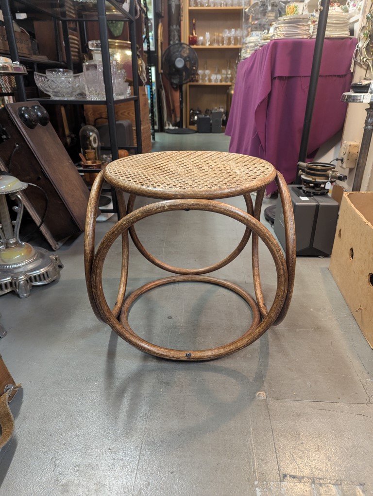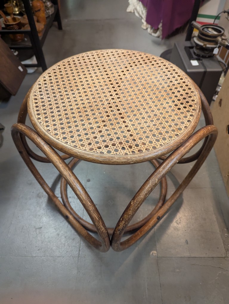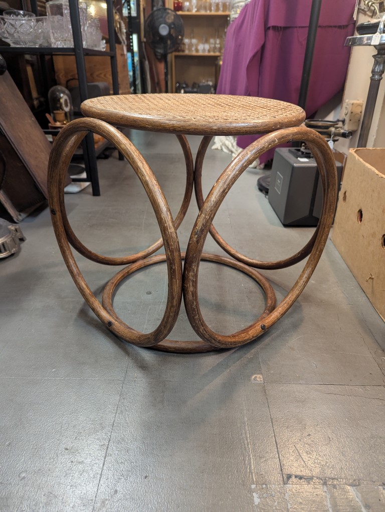 Mid-Century Bentwood Thonet Style Rattan Foot Stool Side Table