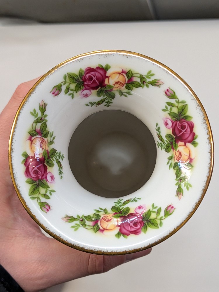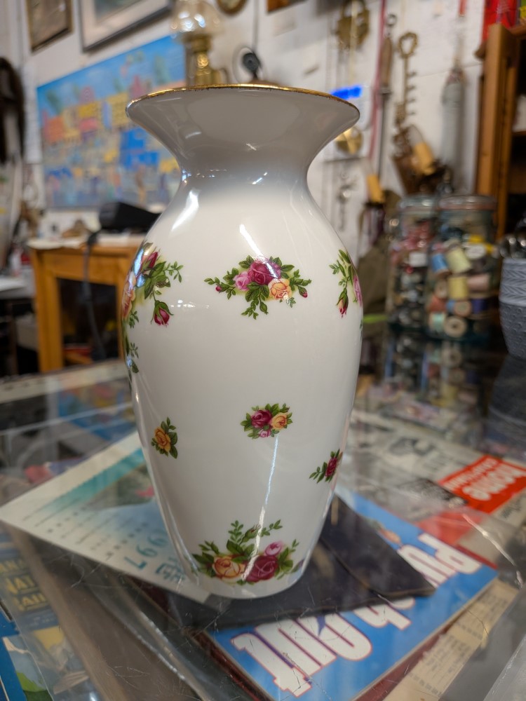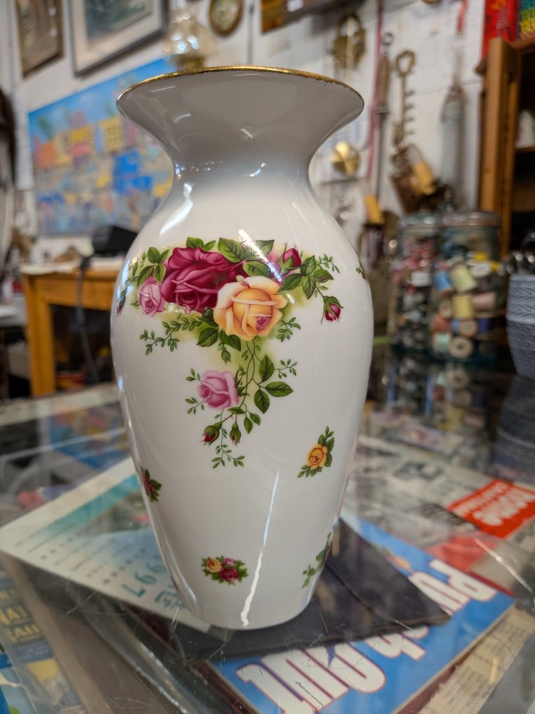 Royal Albert Old Country Roses Bone china vase hand signed Michael Doulton