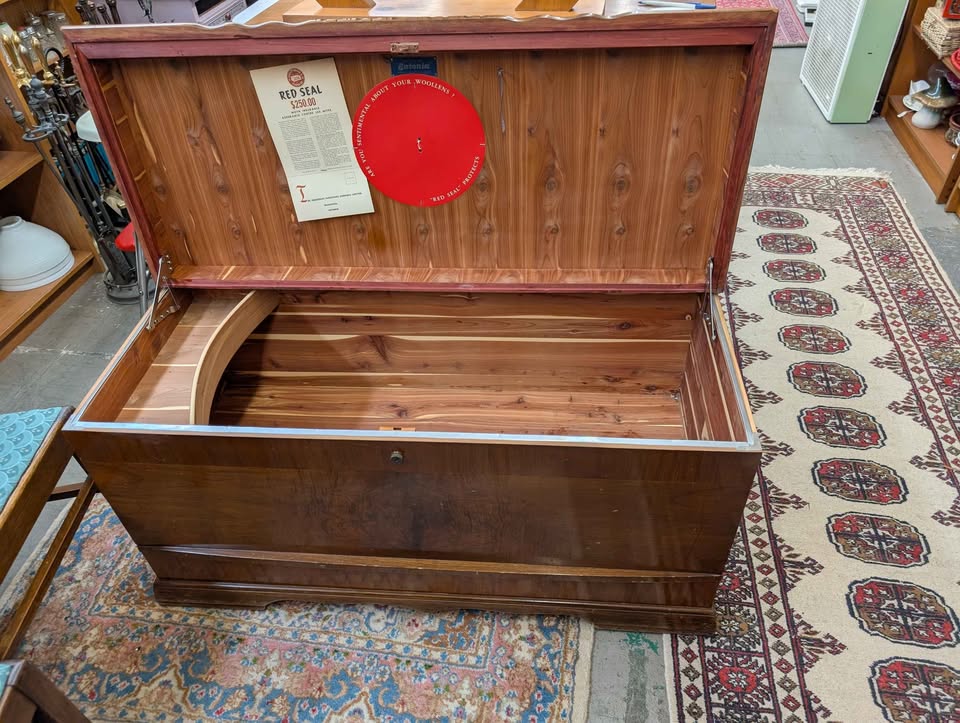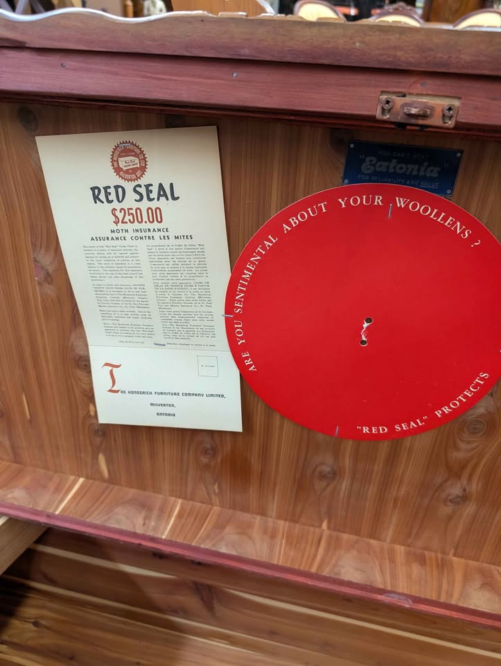 Canadian-made Honderich cedar chest with a beautiful “Waterfall” Art Deco exterior and a pristine aromatic interior.