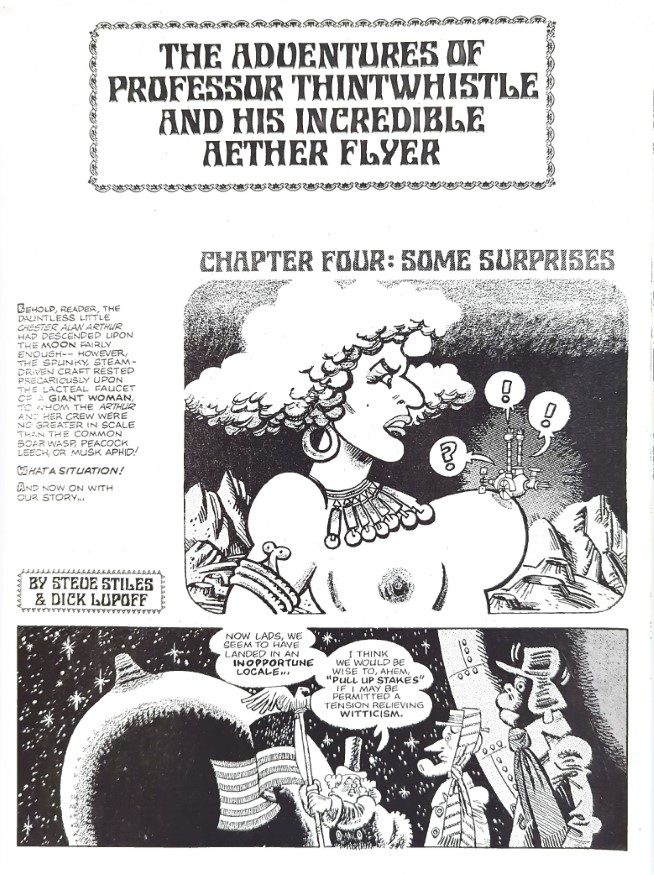Interior works by legendary artists such as Lou Stathis, Jay Kinney, Barry Malzberg, Bob Stewart, Steve Brown, Jeronaton, Steve Stiles, Richard Lupoff, Richard Corben, Paul Kitchner, Caza, and many more…